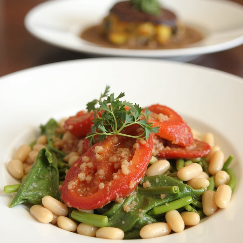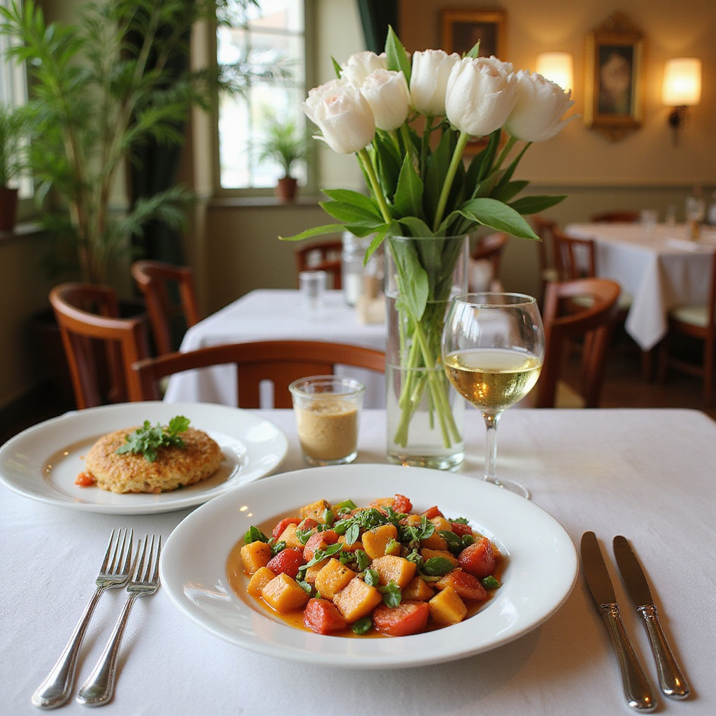 Disfruta de un delicioso menú diario que incluye un primer plato a elegir entre opciones como ensalada de pimientos asados con ventresca o judías blancas con perdiz, seguido de un segundo plato como filete de ternera o merluza en salsa verde. Todo por solo 16,50€, con ración de pan y postre o café incluidos.